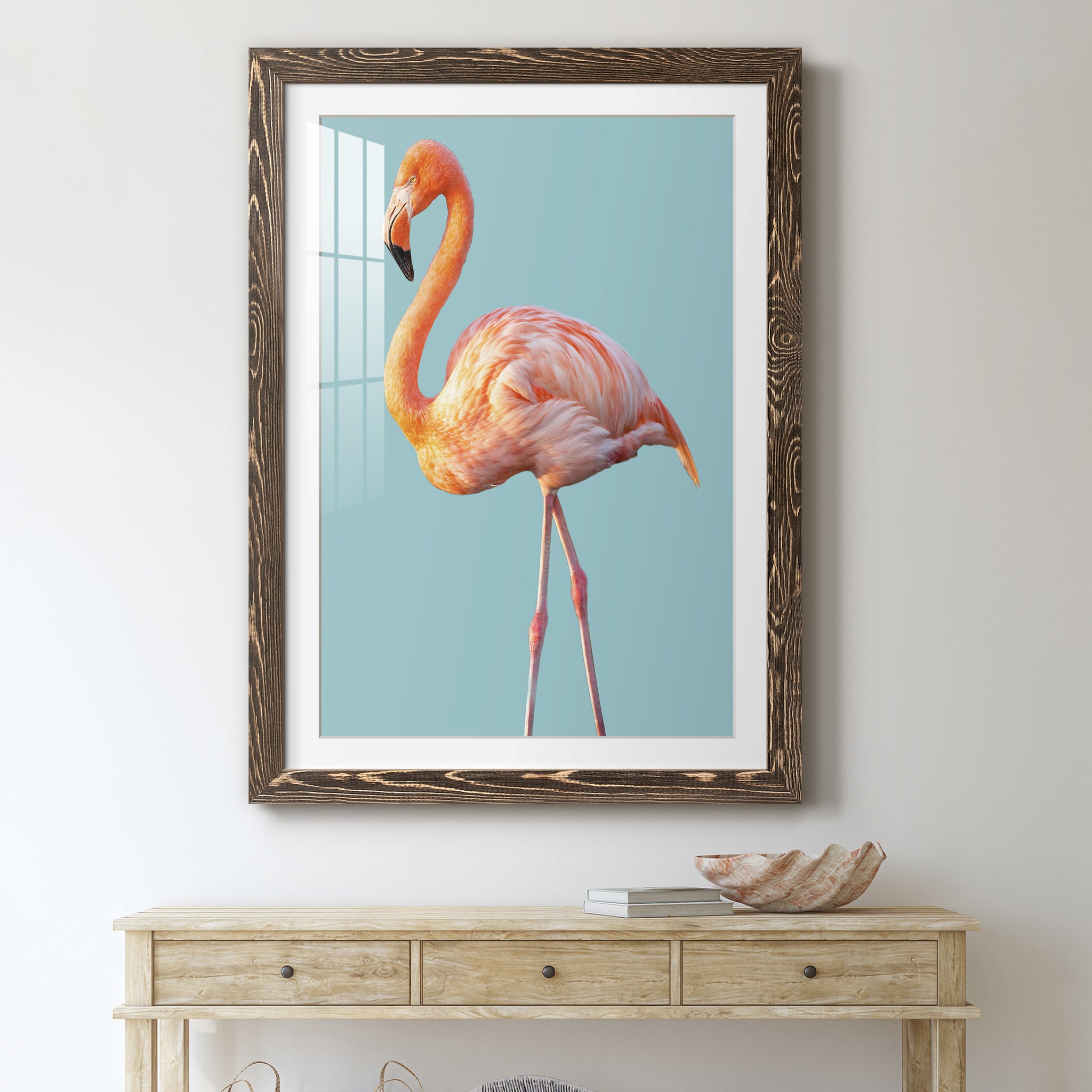 Flamingo - Premium Framed Print - Distressed Barnwood Frame - Ready to Hang