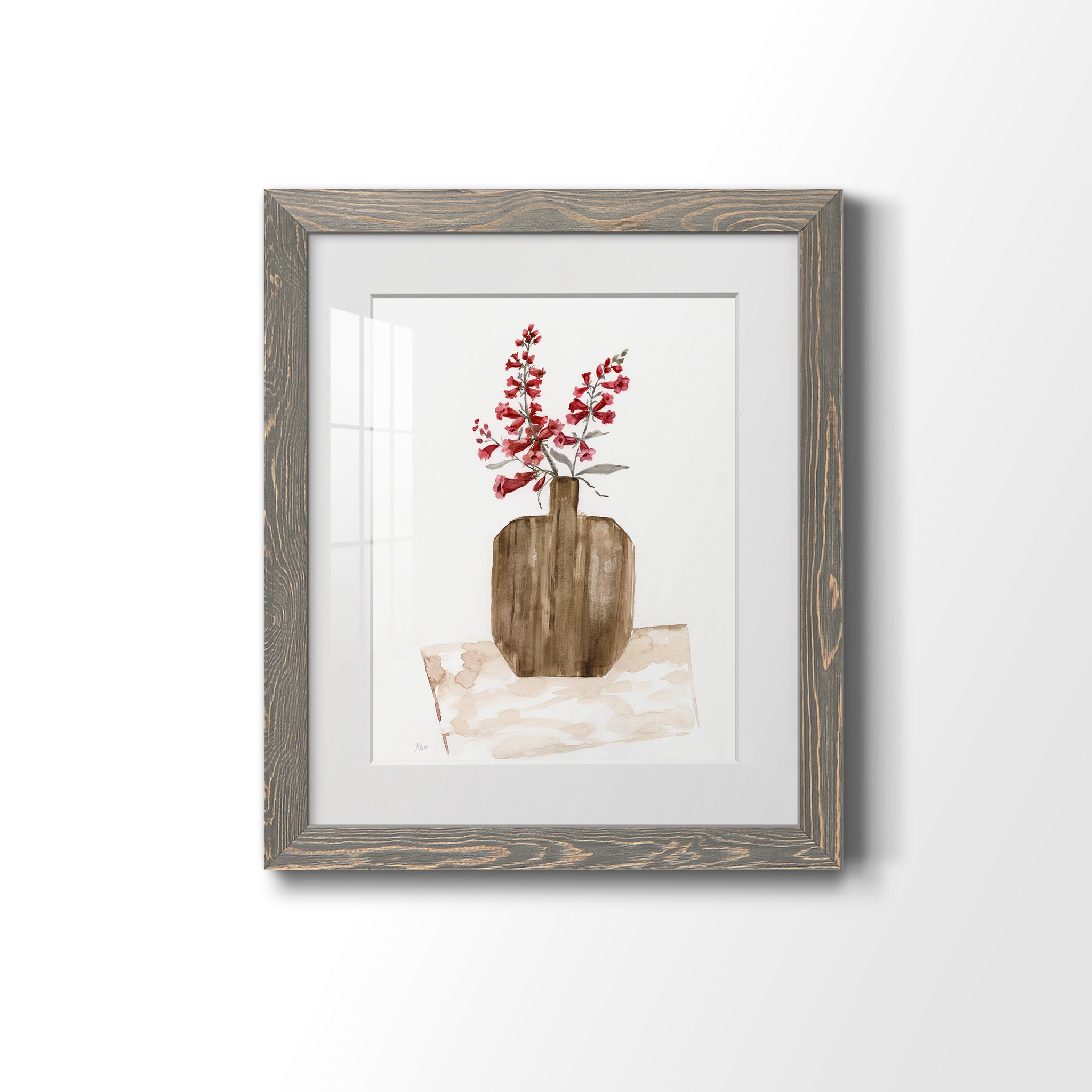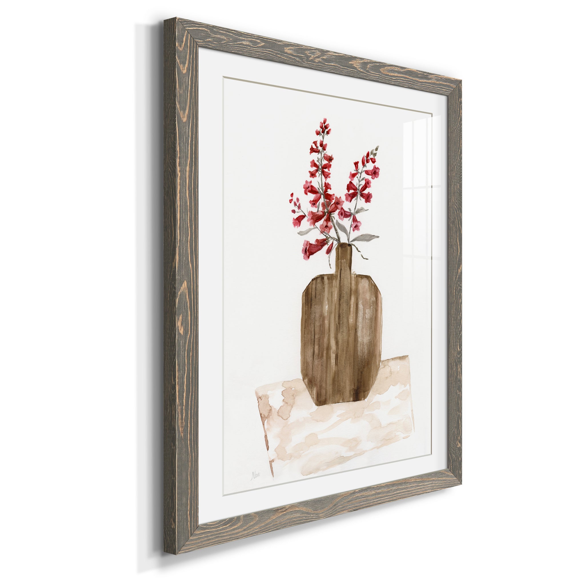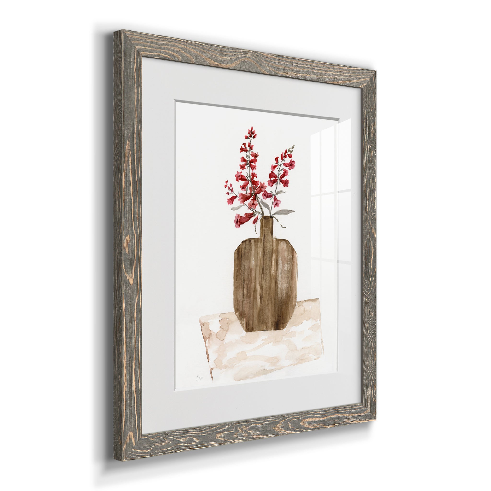 Premium paper print framed with a 2in matboard, enclosed in a distressed barnwood frame. Made to order, domestically.