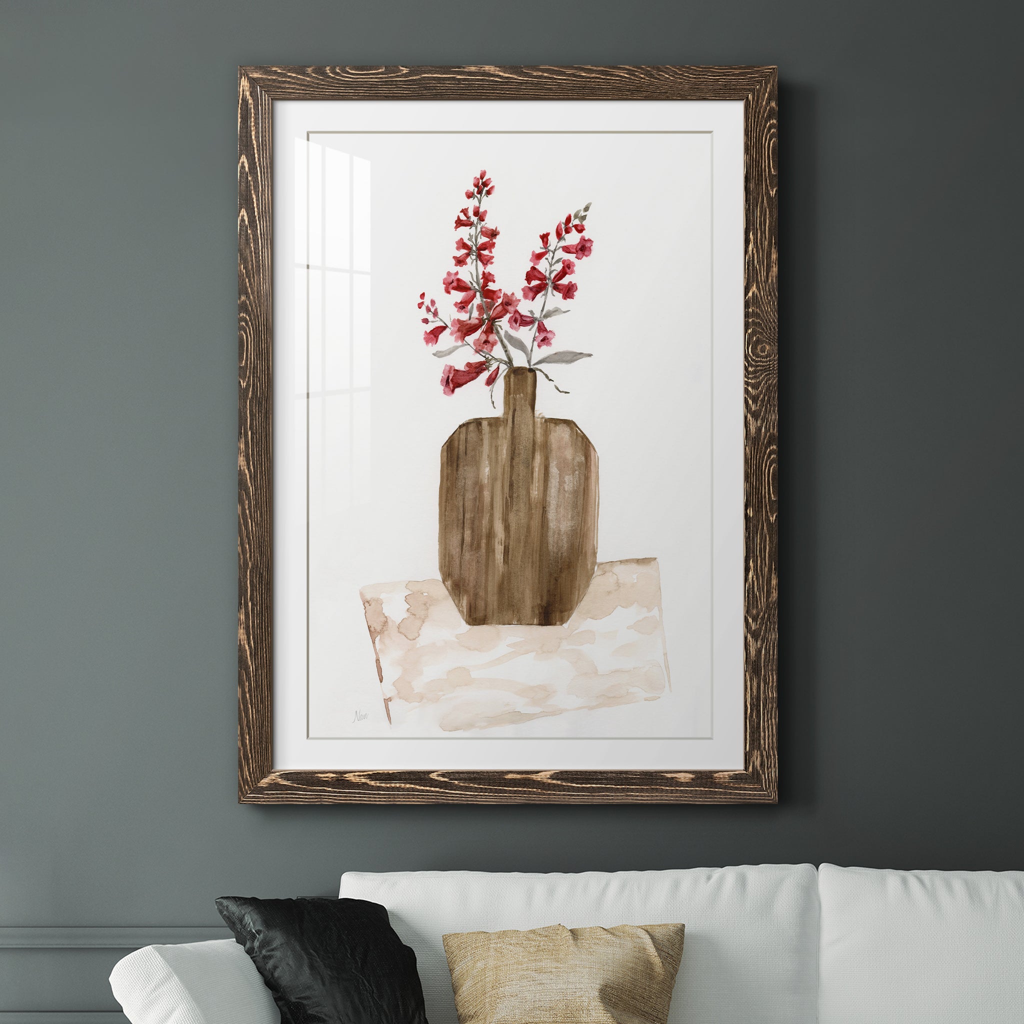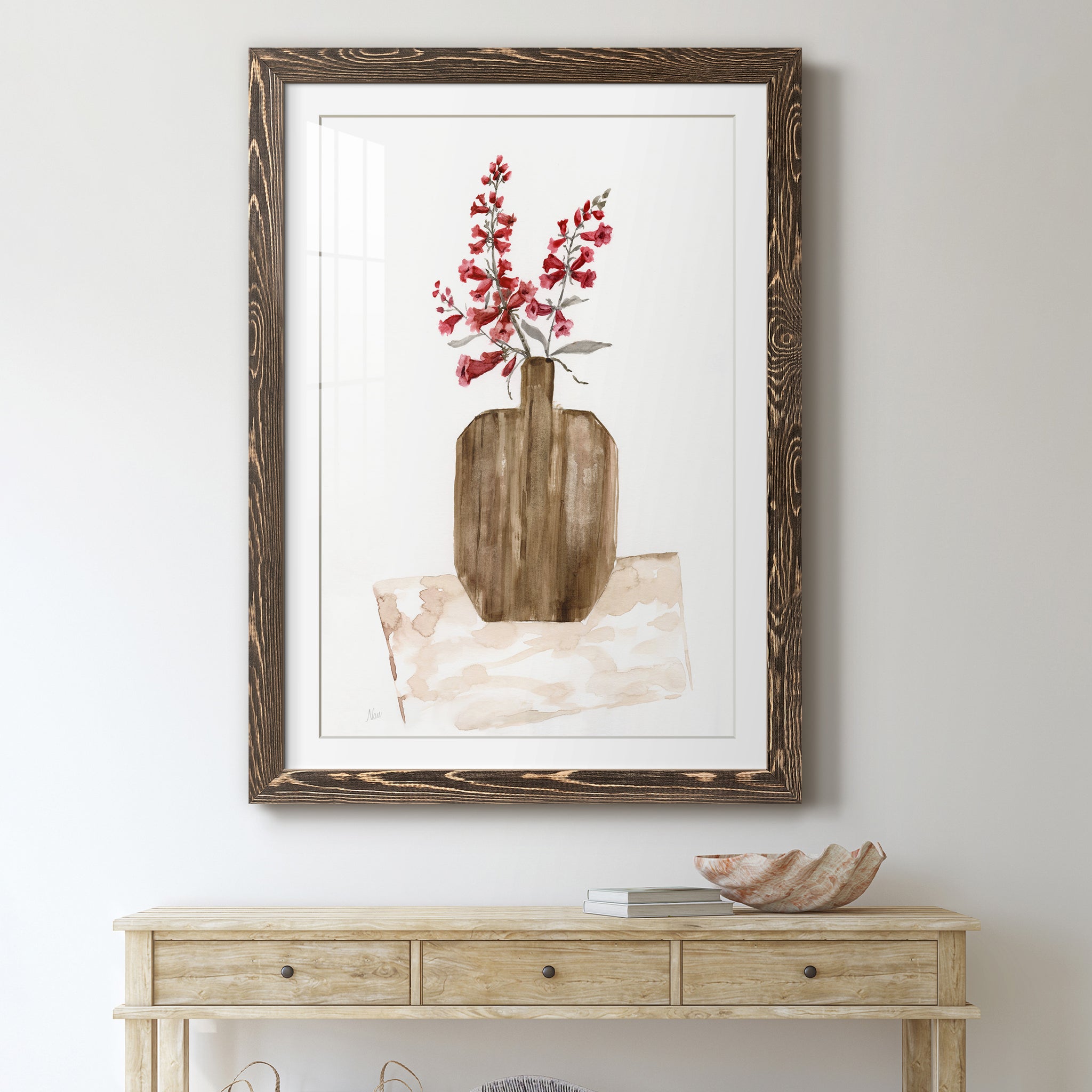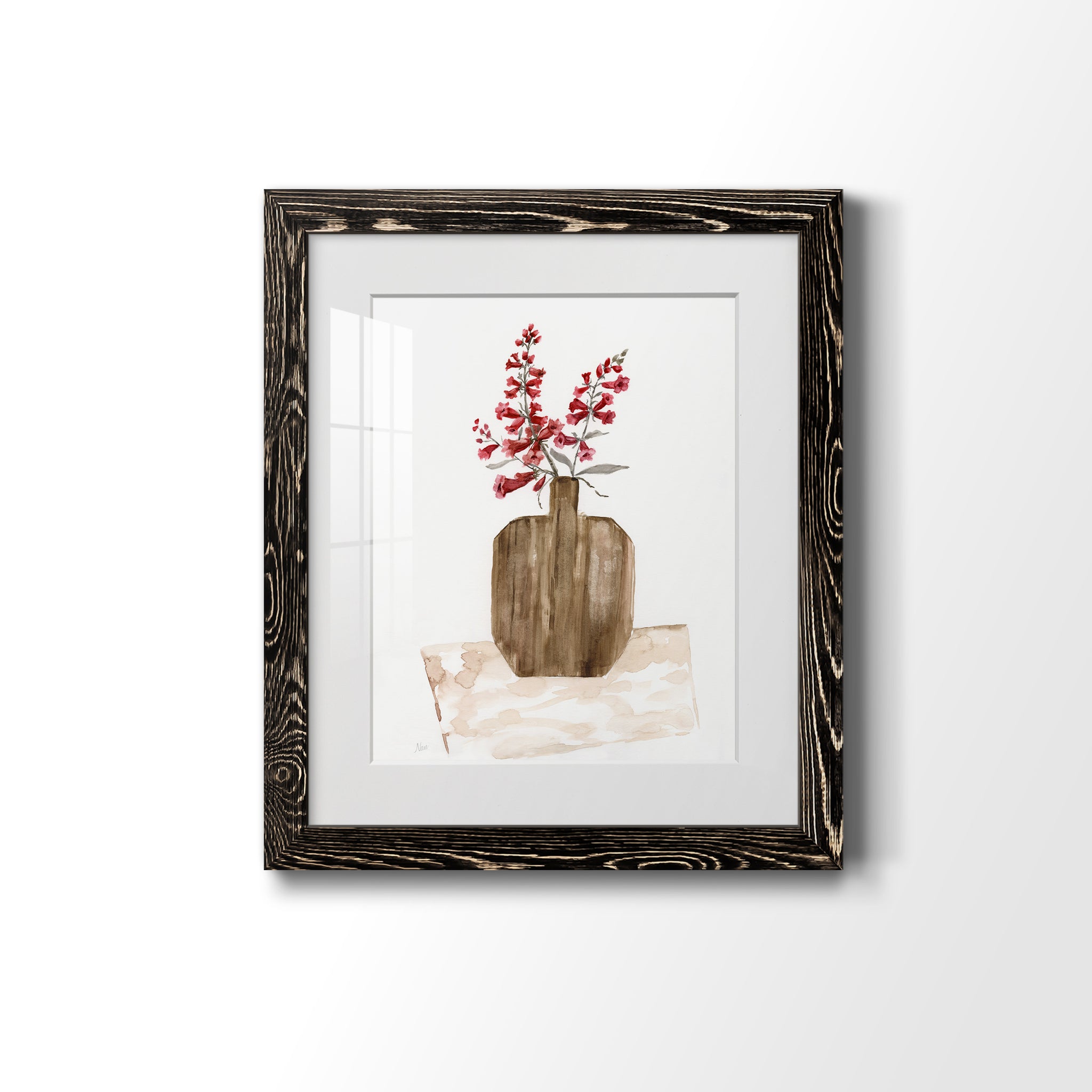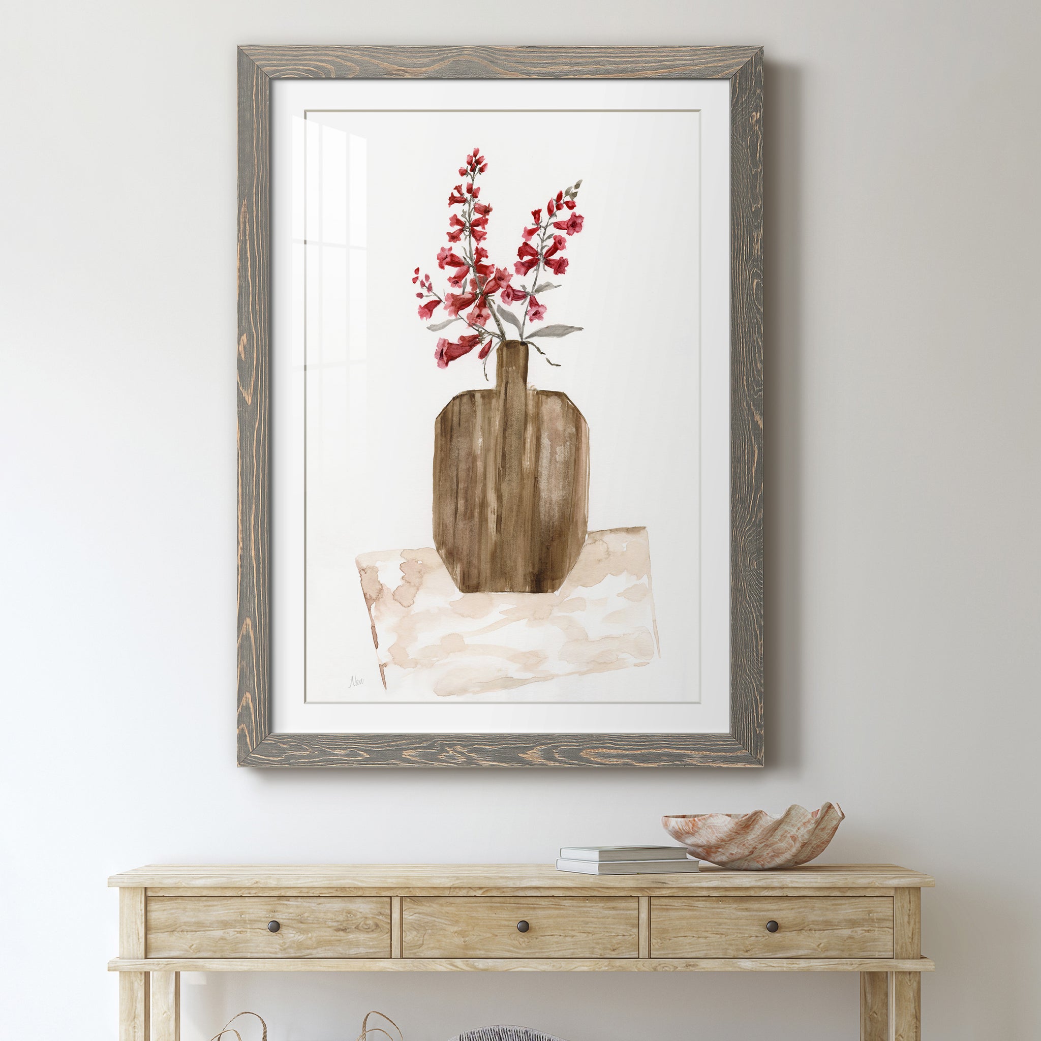 Premium paper print framed with a 2in matboard, enclosed in a distressed barnwood frame. Made to order, domestically.