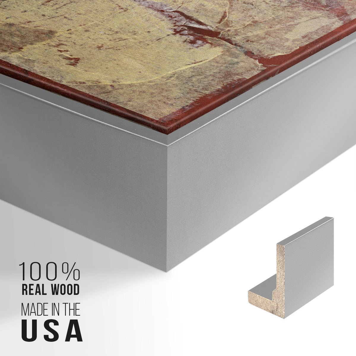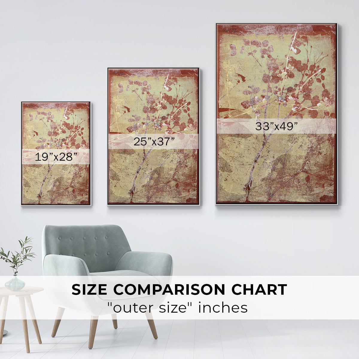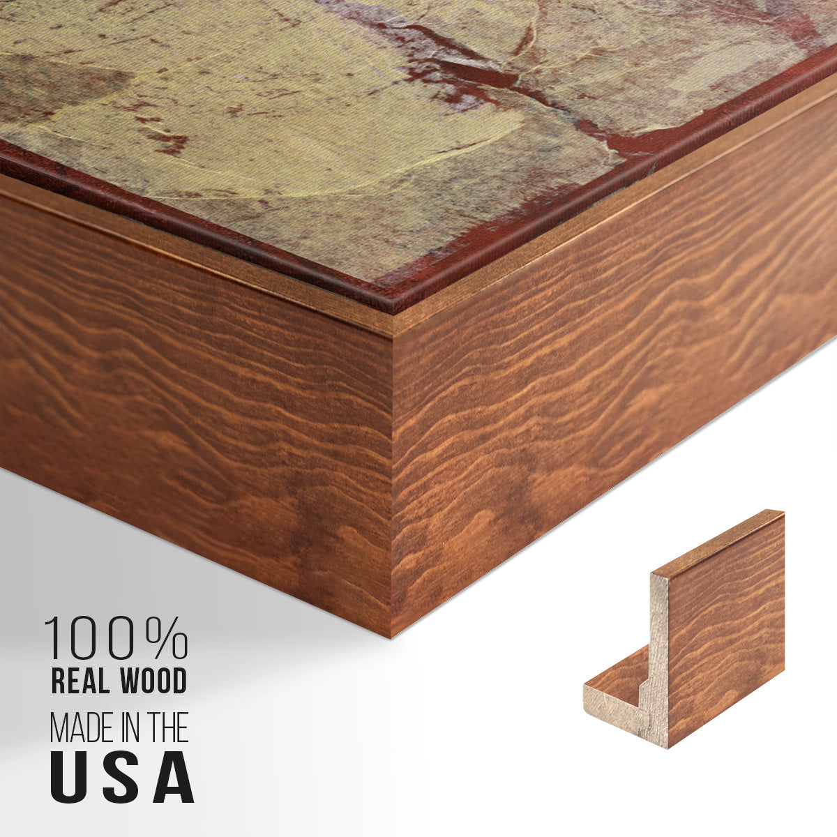 Framed in distressed wood and available in an array of sizes and colors.