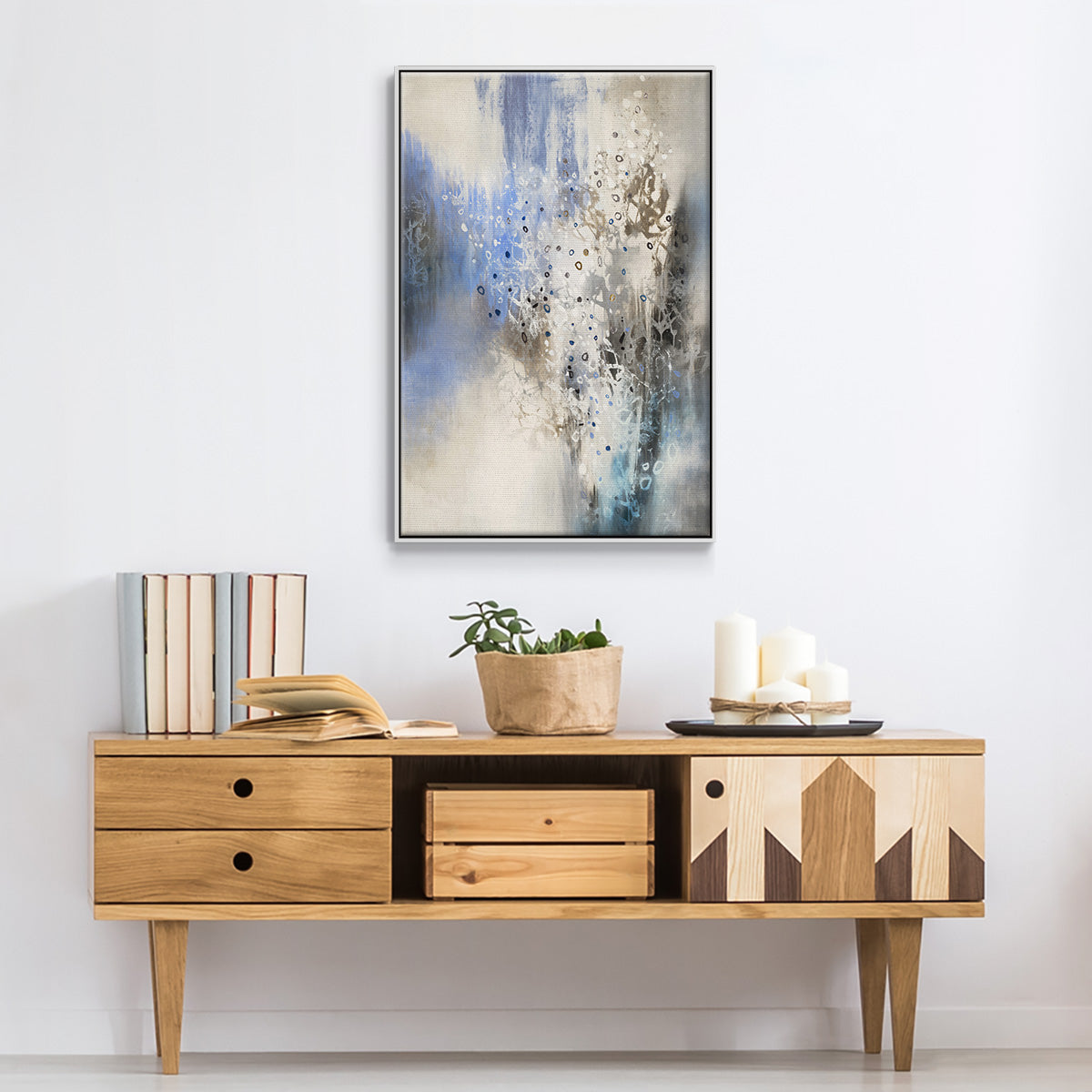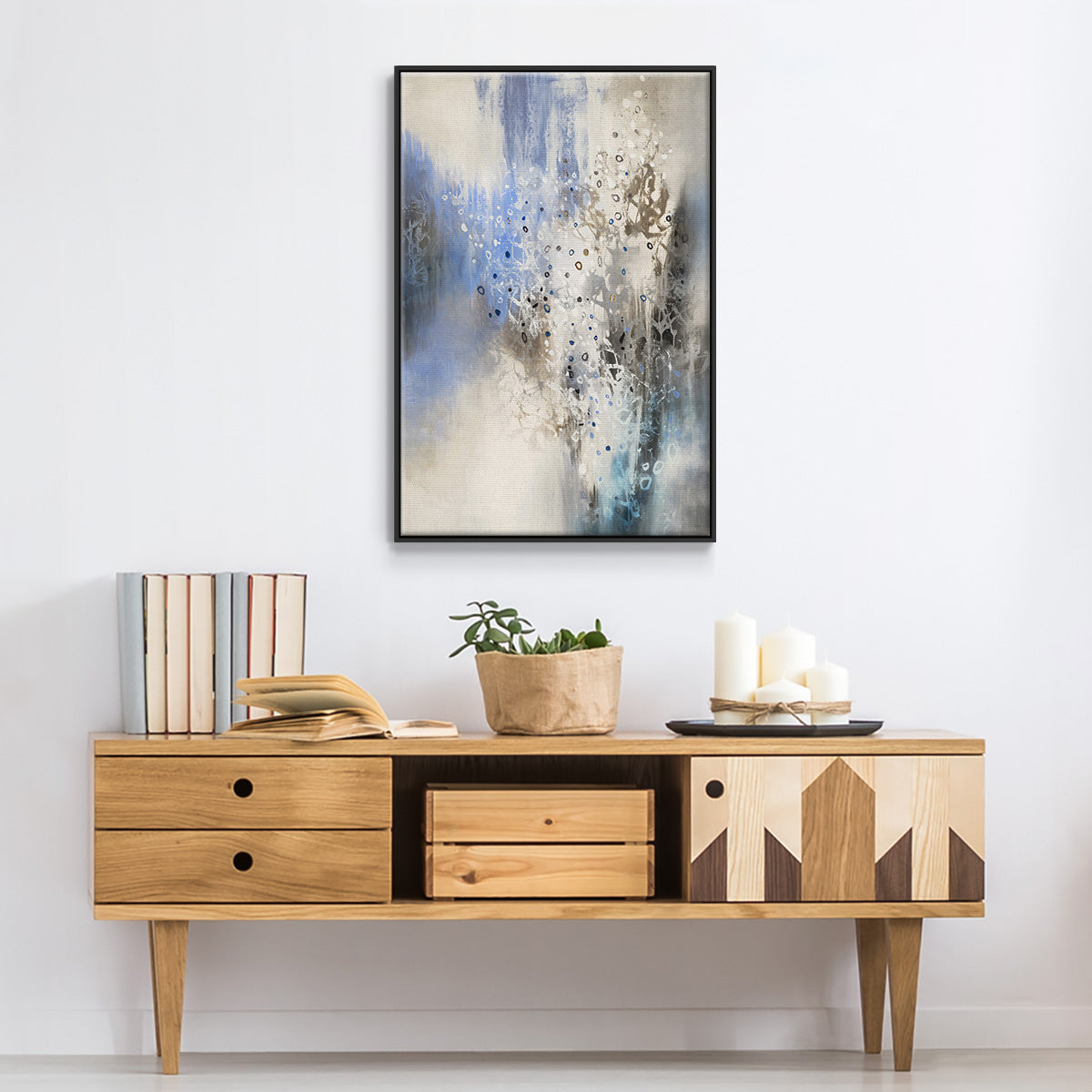 Framed in distressed wood and available in an array of sizes and colors.