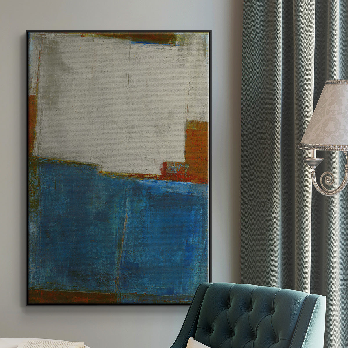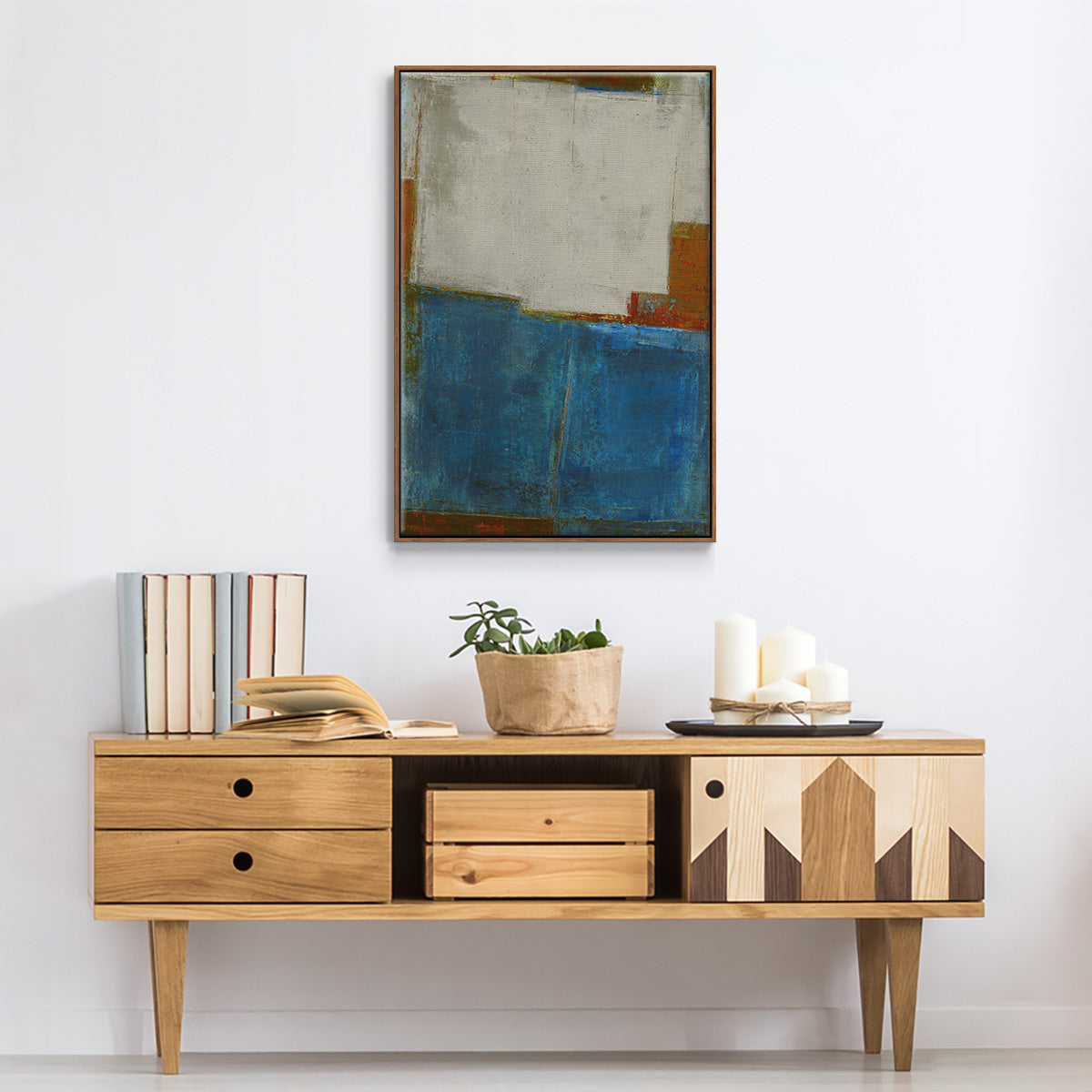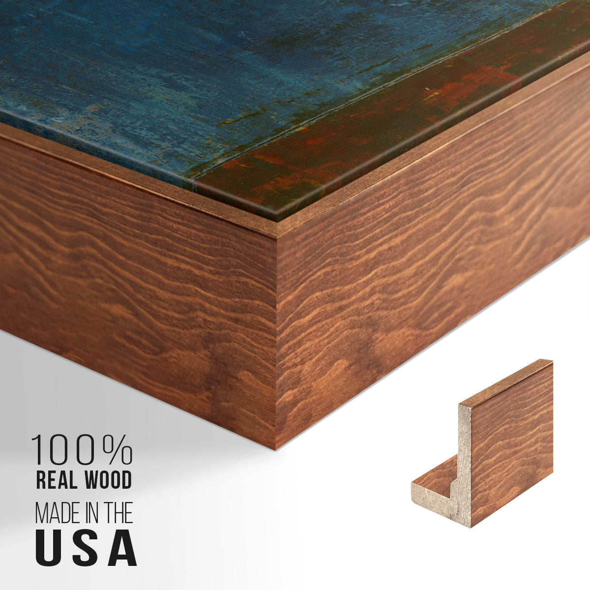 Framed in distressed wood and available in an array of sizes and colors.