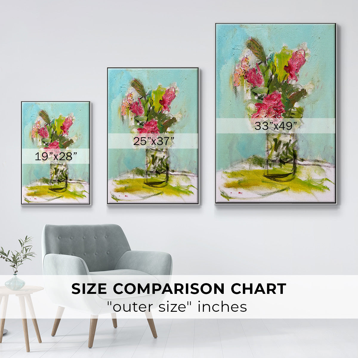 Framed in distressed wood and available in an array of sizes and colors.