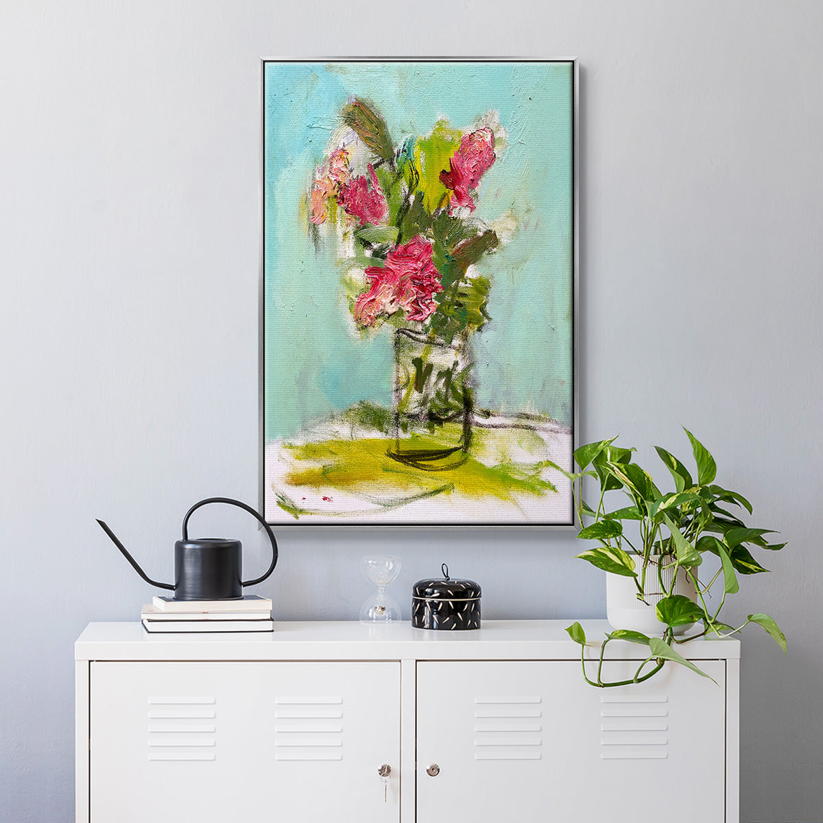 TURQUOISE LILLY - Framed Premium Gallery Wrapped Canvas L Frame - Ready to Hang